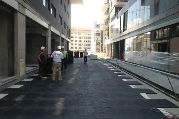 Ob Baustelle, Festival oder Lagerhalle – wer temporäre Bodenflächen sicher, stabil und wirtschaftlich schützen möchte, greift zur FastCover FC115 Bodenmatte.