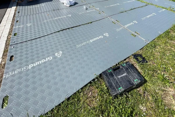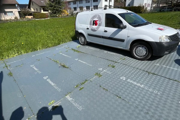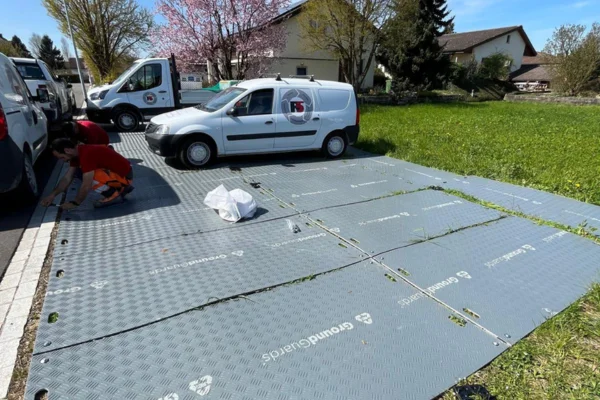 Die LiteTrack Bodenschutzplatten (2.4 m x 1.2 m x 12 mm) bieten der R5-Group AG eine ideale Lösung für temporäre Wege, Zufahrten und Lagerflächen: